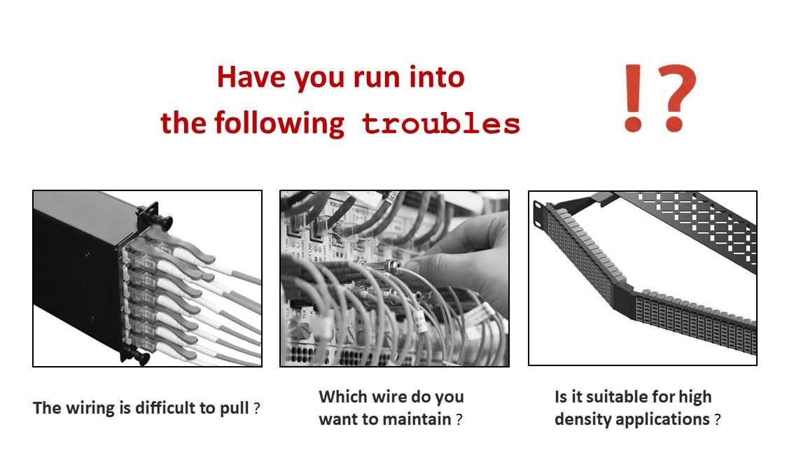 Dans les applications haute densité, il est facile de rencontrer les problèmes suivants, le câblage est difficile à retirer et à entretenir.