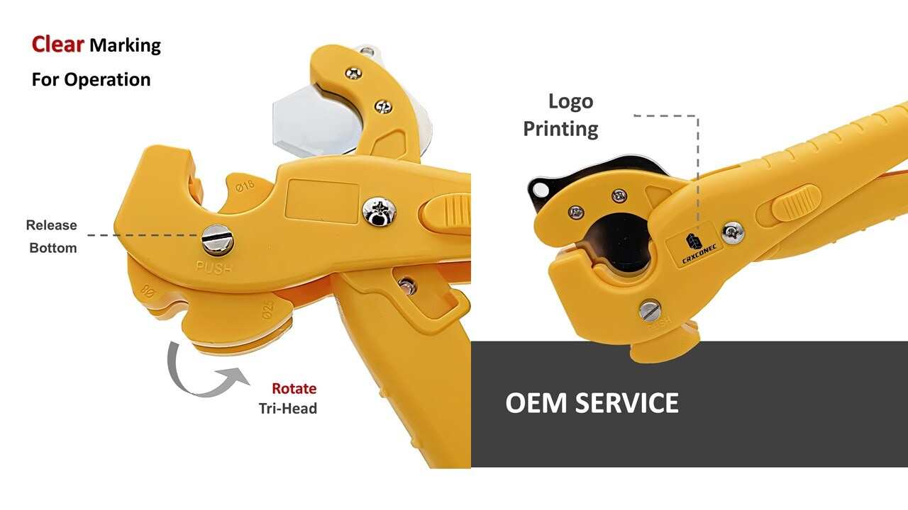 Le coupe-conduit en fibre est une conception intelligente avec le concept de bobine rotative. La tête rotative est conçue pour différents câbles de diamètre de conduit de fibre. Il suffit de relâcher le côté inférieur et de faire pivoter la tête, il peut être facile de changer la tête pour couper le câble du conduit de fibre.